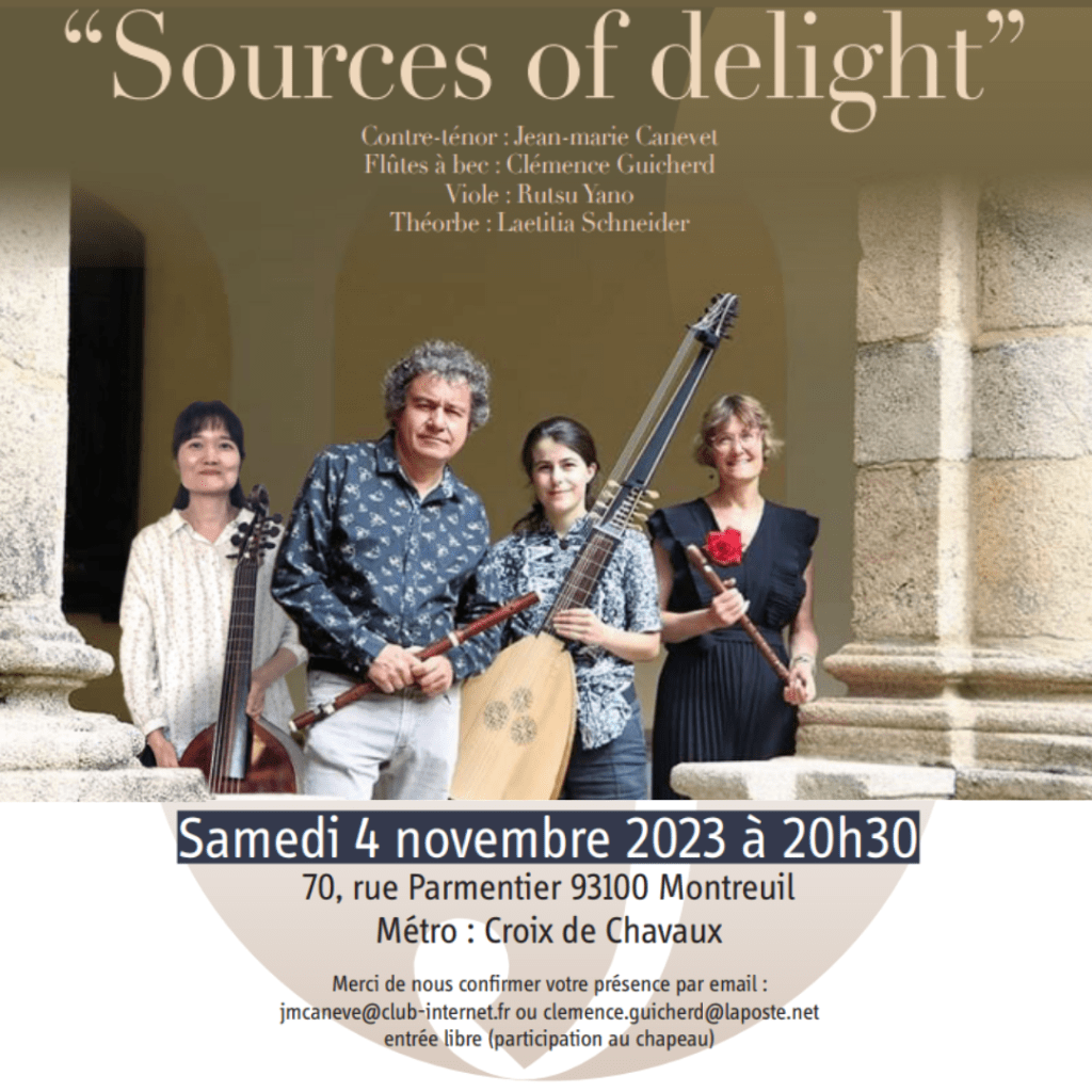 Les programmes que nous proposons au public magnifient l’exceptionnelle voix de Contre-ténor de Jean-Marie Canevet. Nous abordons un répertoire éclectique allant des Sonates en trio de compositeurs allemands, italiens ou français (Bach, Quantz, Corelli, Dornel…) aux airs d’Opéras (Haendel) en passant par les cantates des plus grands compositeurs du Baroque (Bach, Scarlatti, ….).